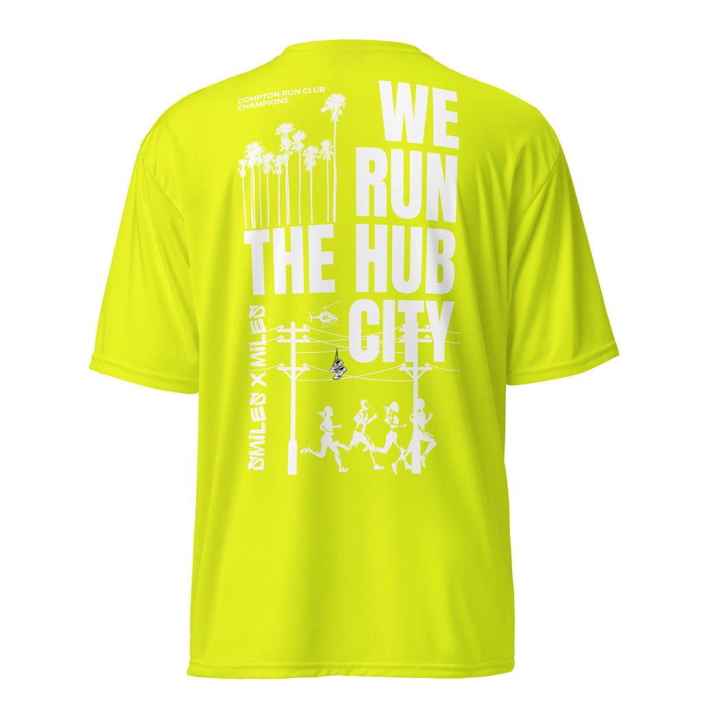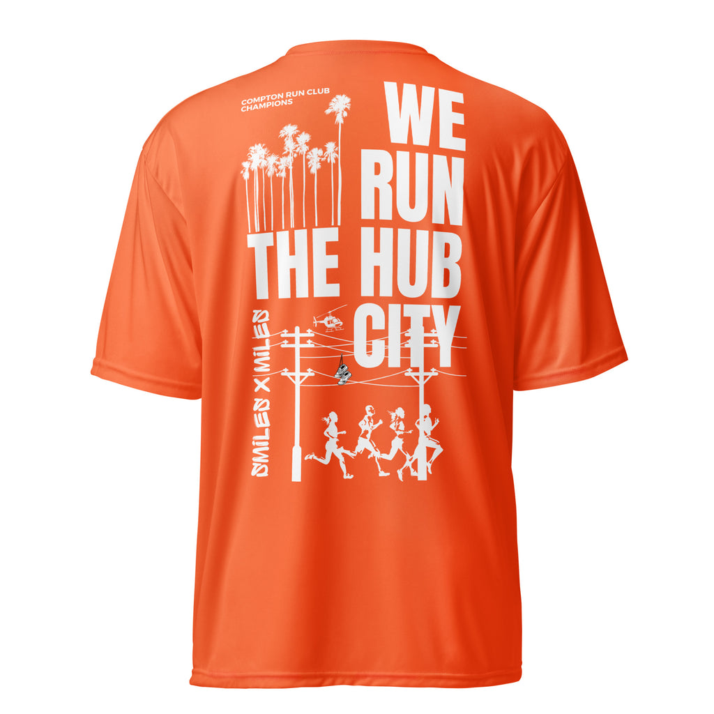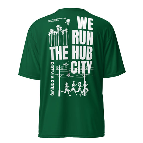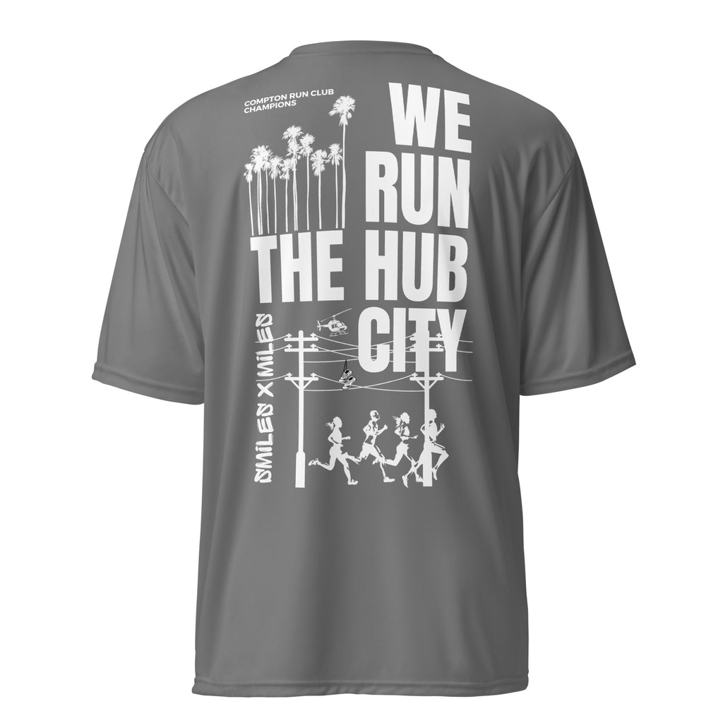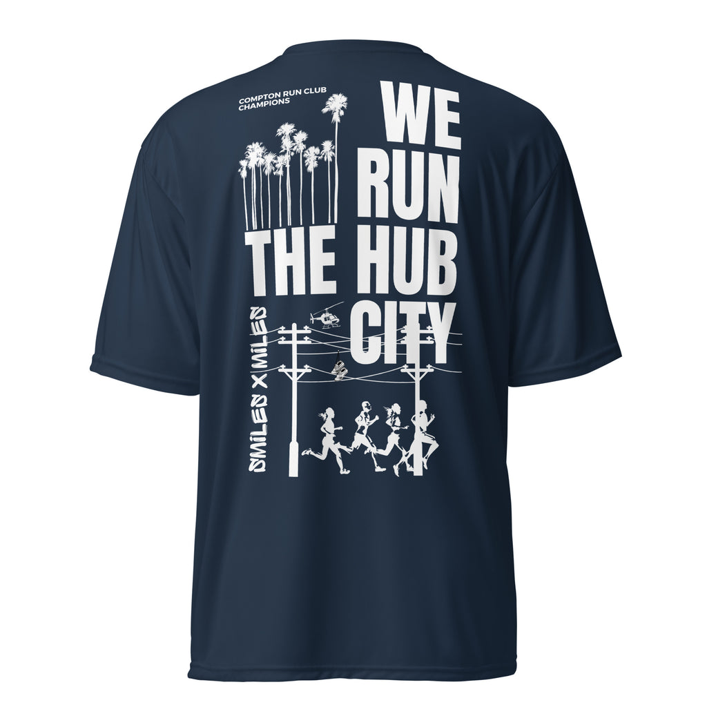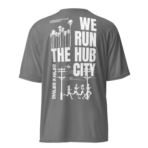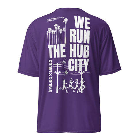 WE RUN THE HUB CITY- Unisex performance crew neck t-shirt